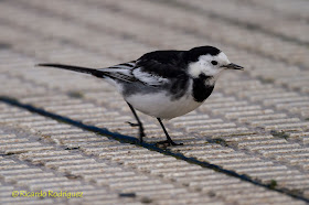 Lavandera blanca enlutada o pía, macho adulto en plumaje de invierno. A destacar las partes superiores muy negras de este ejemplar en comparación con otros adultos observados y que le dan un aspecto muy similar al plumaje estival. Estos ejemplares con coloración tan contratada, quizás són individuos de varíos años.
